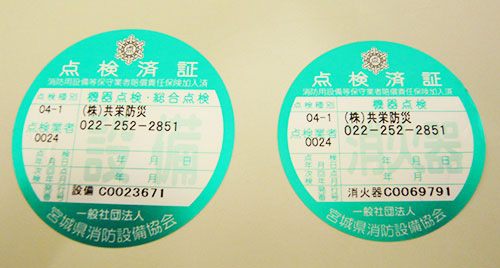 法令に基づく適正な点検を行った証として点検済(ラベル)を消防用設備等の定められた位置に貼付します。